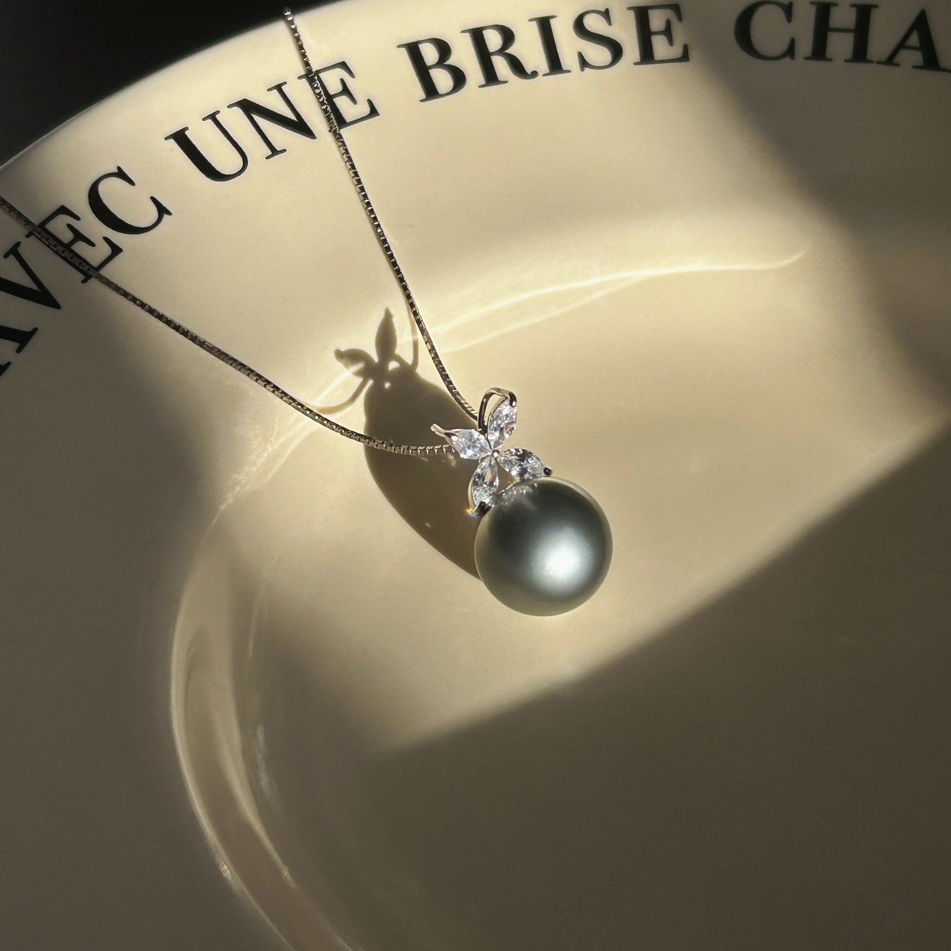 12.5mm Silver Tahitian Pearl Fleur Pendant